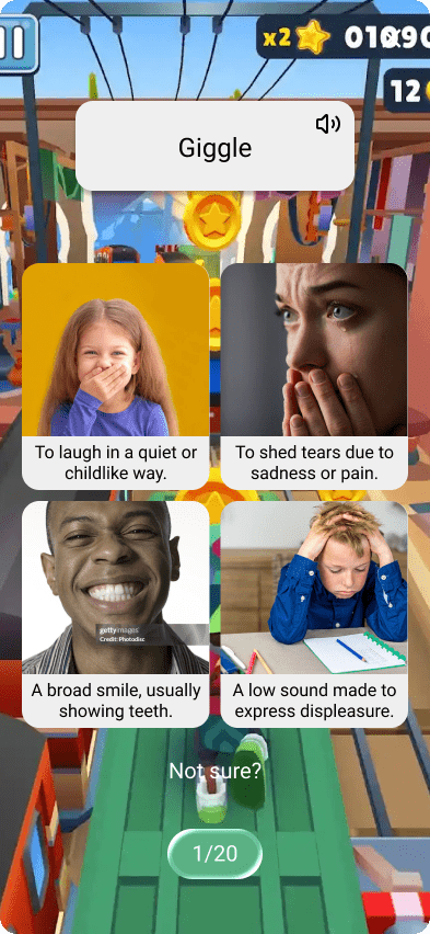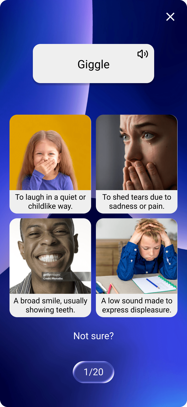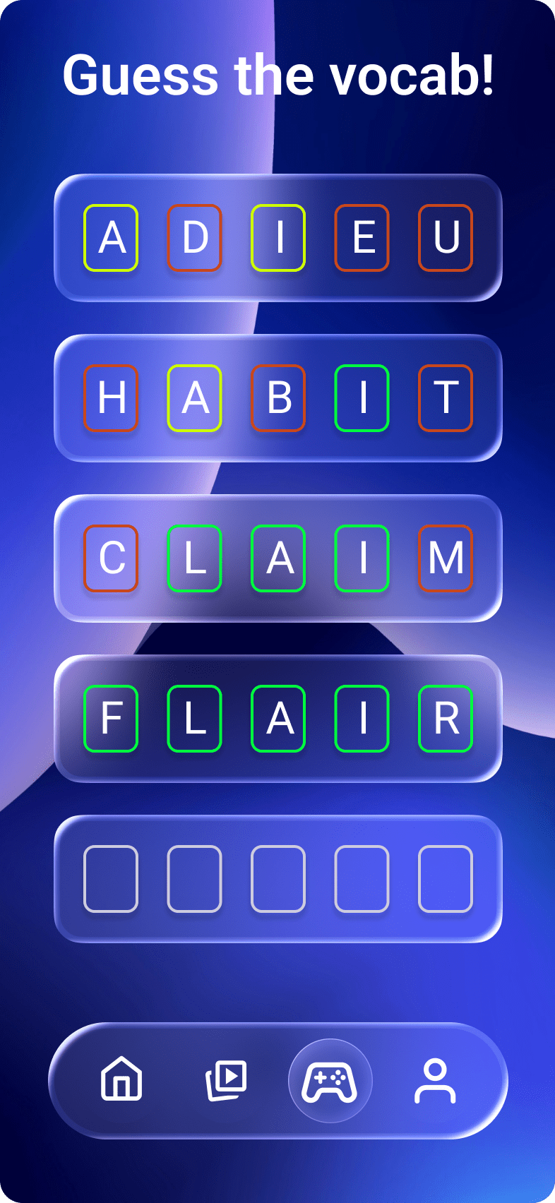 Nachdem die schwierigen Wörter identifiziert wurden, kannst du sie in einem spaßigen, spielerischen Erlebnis lernen. Die Lernkarten sind wie ein Spiel gestaltet, bei dem du Punkte verdienen und aufsteigen kannst, während du Fortschritte machst. Die Methode der zeitlich verteilten Wiederholungen sorgt dafür, dass du die Wörter zum richtigen Zeitpunkt wiederholst, was hilft, sie zu festigen und langfristig zu behalten.