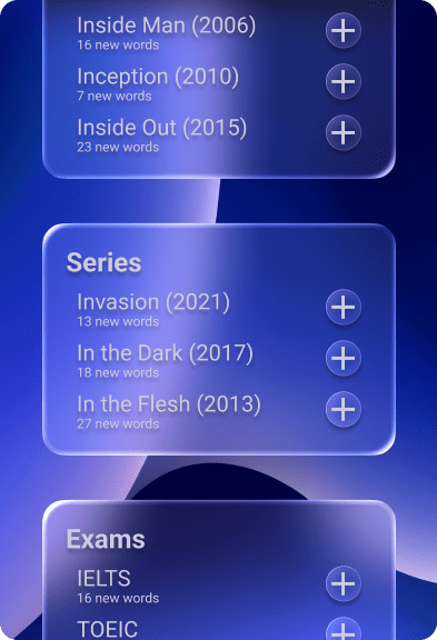 Erweitere deinen Wortschatz durch einen fesselnden Prozess, der deine Liebe zu Filmen mit gamifiziertem Lernen verbindet. Wähle einen Film, lass Echo schwierige Wörter identifizieren und lerne sie dann durch lustige Lernkarten‑Übungen und zeitlich verteilte Wiederholungen. Diese Methode macht das Sprachenlernen unterhaltsam und effektiv.